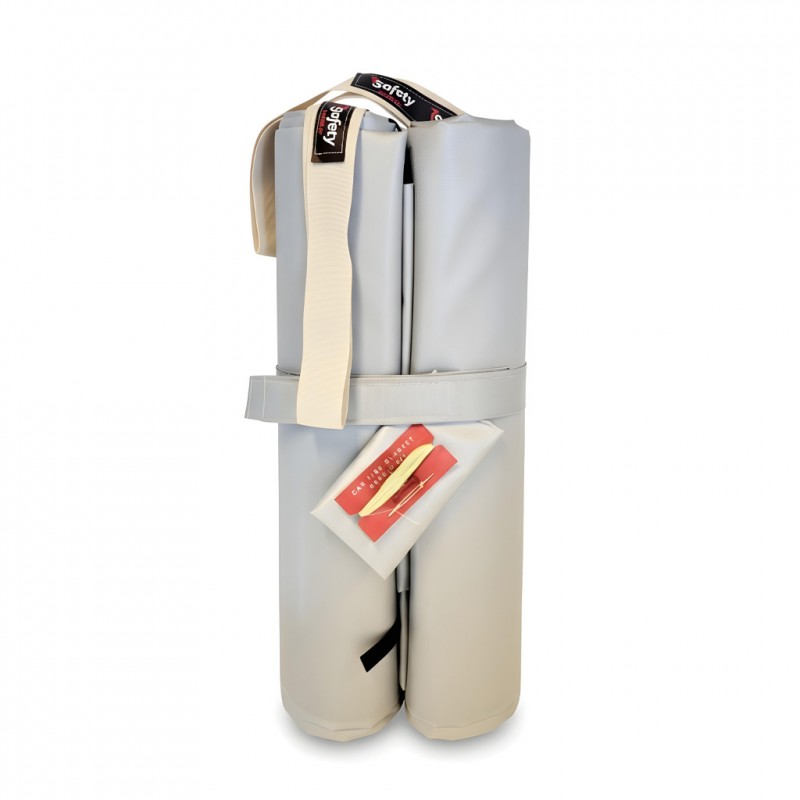 La couverture anti-feu peut être manipulée par une seule personne si vous achetez une corde et un sac de sable séparément. Attachez la corde et le sac de sable à la couverture anti-feu et lancez le sac de sable par-dessus le chariot élévateur puis utilisez la corde pour tirer la couverture anti-feu par-dessus le chariot élévateur.