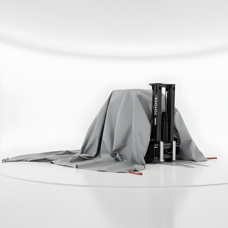 2. Attraper chacun une lanière et étendre la couverture anti-feu en toute sécurité sur le chariot élévateur dans un mouvement continu.