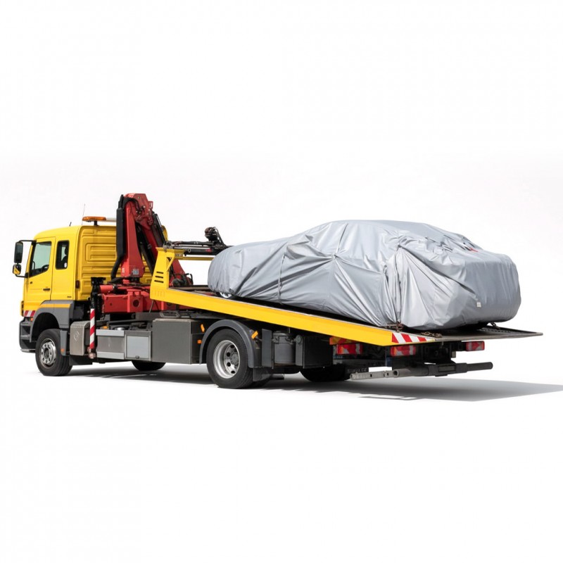 5. Le véhicule est emballé en toute sécurité. S'il prend feu, la zone environnante et la dépanneuse seront protégés.