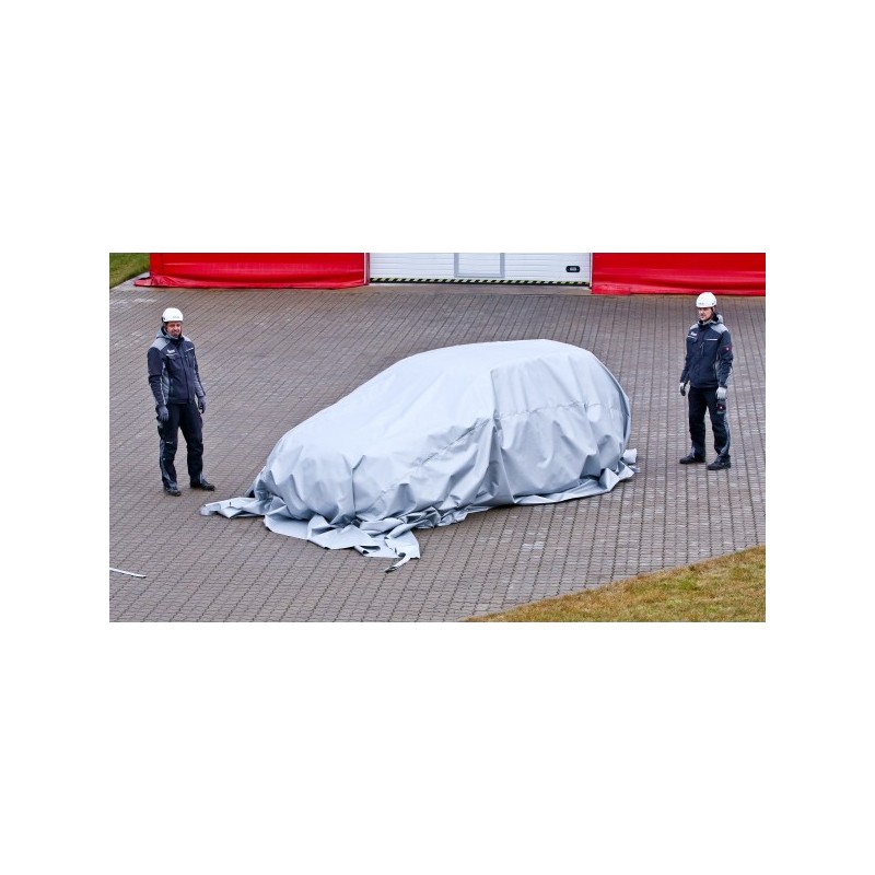 C'est simple : en recouvrant le véhicule, la couverture prive les flammes d’oxygène, ce qui stoppe le feu en quelques secondes. Elle isole aussi les gaz toxiques et limite la propagation de la chaleur et des flammes aux alentours.