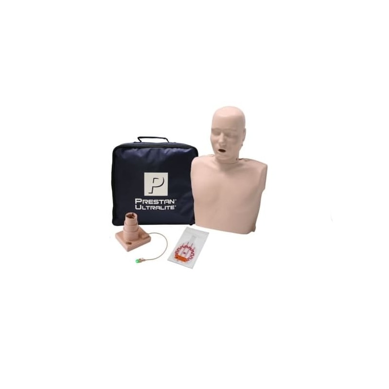 Le mannequin Prestan Ultralite est le mannequin de RCP idéal pour la formation sur plusieurs sites. Le mannequin Ultralite est très léger et peut être démonté pour prendre le moins de place possible. Le sac de transport compact est deux fois plus petit qu'un sac pour mannequin adulte standard, mais contient toutes les pièces et tous les accessoires nécessaires. Ce modèle de mannequin Ultralite ne dispose d'aucune option de retour d'information et est donc idéal pour s'entraîner à la RCP.